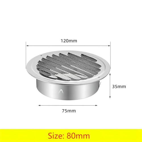 Qrity Griglia di Ventilazione Rotonda 80mm, Presa D'Aria Rotonda a Parete in Acciaio Inox, con Rete per Insetti, Griglia Circolare Incorporata, Griglia Resistente Griglia Resistente Alle Intemperie
