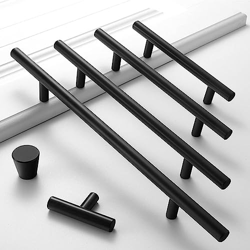 Qrity 10x Maniglie per Armadietti, Con viti in Acciaio Inossidabile, 128mm, per Armadi, Ante in Vetro, Armadietti da Cucina Ecassetti, Camera da Letto, Bagno, Modello T, Nero