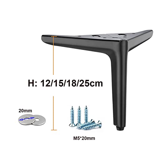 Qrity 4 Pack Gambe Triangolari Nere per Mobili da 18 cm, Processo di Lucidatura Galvanica, Adatto per Armadietto, Divano, Tavolino da Caffè, Mobile TV e Altri Mobili