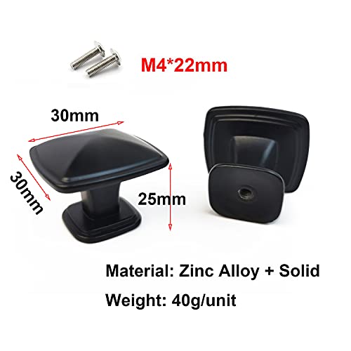 Qrity 2 Pezzi Manopole per Armadietti 30mm Maniglia per Cucina Maniglia in Lega di Zinco per Armadio a Cassetti Armadio, Quadrato, Nero