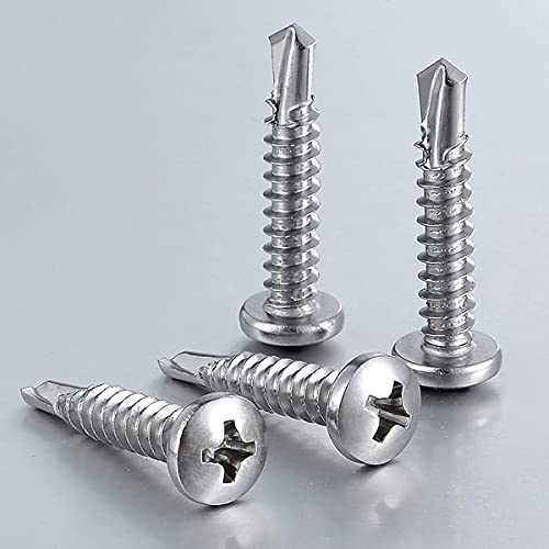 Qrity 50 Pezzi Vite Autofilettante M4.2x32mm con Coda di Trapano, Viti Autoperforanti a Testa Tonda Phillips