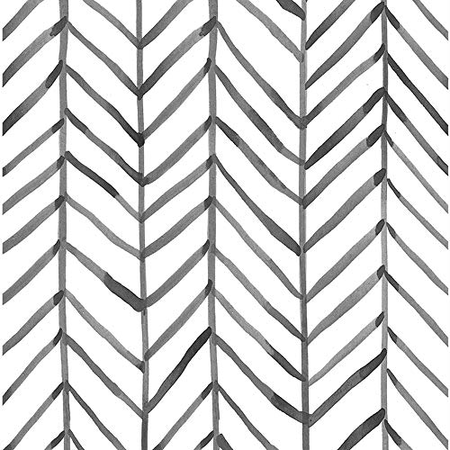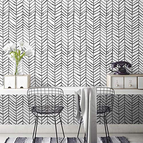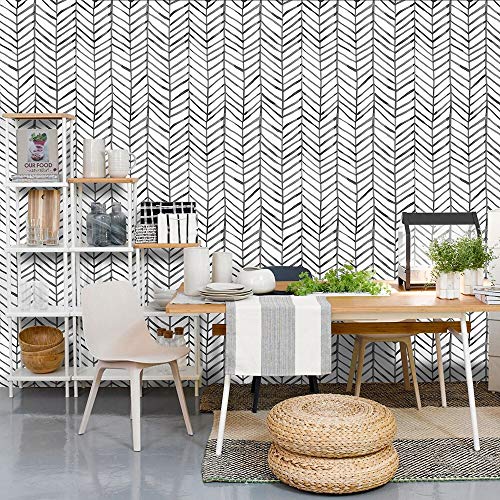 QSCTYG Carta da Parati autoadesiva Modern Stripe Peel e Stick Wallpaper Wallpaper Herringbone Nero Vinile Bianco Vinile Adesivo Autoadesivo Carta da Contatto per Bambini Camera da Letto Home Decor 66