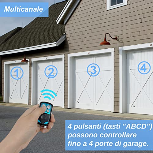 Tecnologia RF -- Un radiocomando trasmette e controlla i segnali attraverso le onde radio. Controlla fino a 4 porte. Non direzionalità e lunga distanza di trasmissione. La più recente tecnologia RF garantisce una migliore portata di trasmissione.