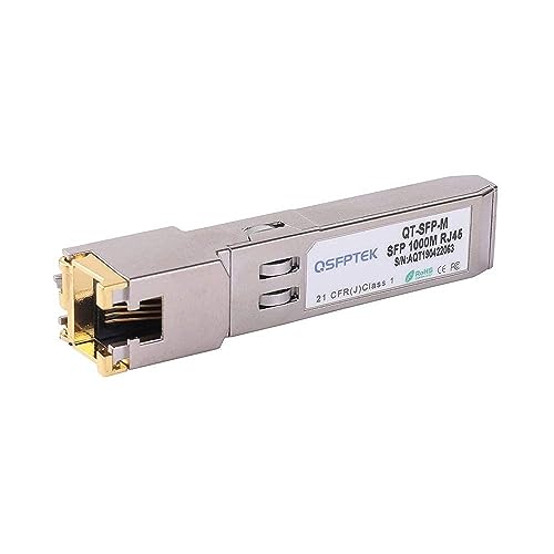 QSFPTEK (2 Pezzi) 1000BASE-T SFP RJ45 Copper SFP Modulo 1.25G Transceiver per Cisco GLC-T / SFP-GE-T, Ubiquiti UF-RJ45-1G, Mikrotik, D-Link, Supermicro, altri switch aperti, fino a 100m
