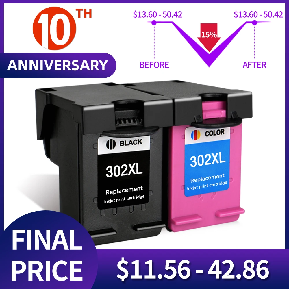 QSYRAINBOW Black Color 302xl Compatible for HP 302 XL Ink Cartridge For HP Deskjet 2130 ENVY 4520 Officejet 4650 Deskjet 3630