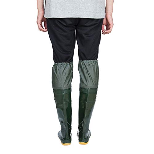 QTDZ Stivali Pesca Leggeri in PVC/Nylon, Pantaloni da Trampolieri Spessi E Super Alti con Restringimento Elastico, Stivale in Gomma Impermeabile Antiscivolo Taglia 35-45 per Uomo Donna,Verde,45 EU