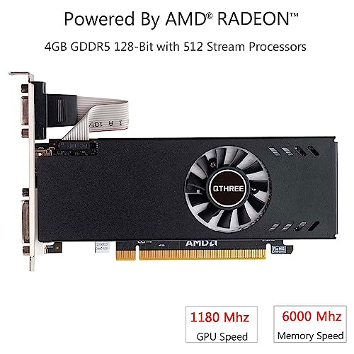 QTHREE Radeon RX 550 Low Profile Scheda Video, 4GB GDDR5 128-bit, DVI-D, HDMI, VGA, PCI Express x8, Gaming Scheda Grafica, DirectX 12, Computer GPU
