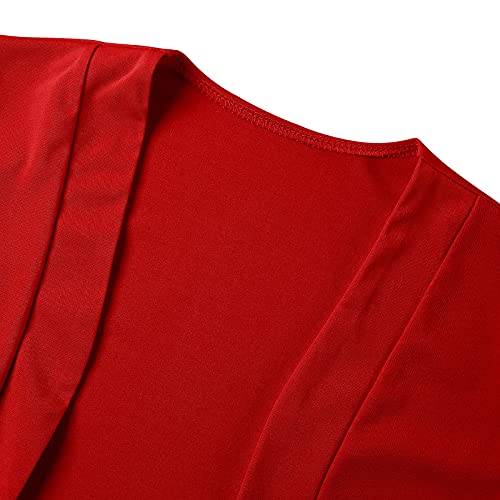 Qtinghua - Coprispalle da donna, a maniche corte, stile bolero, estivo, Y2K, con apertura frontale, Manica lunga, colore rosso., S