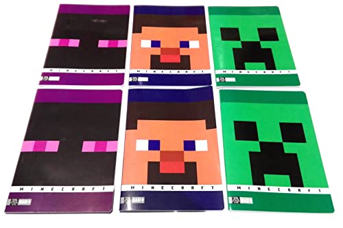 QUADERNI compatibile con Minecraft 6 pezzi a righe1 rigo 30% di pagine in più maxi + Omaggio portachiave fischietto