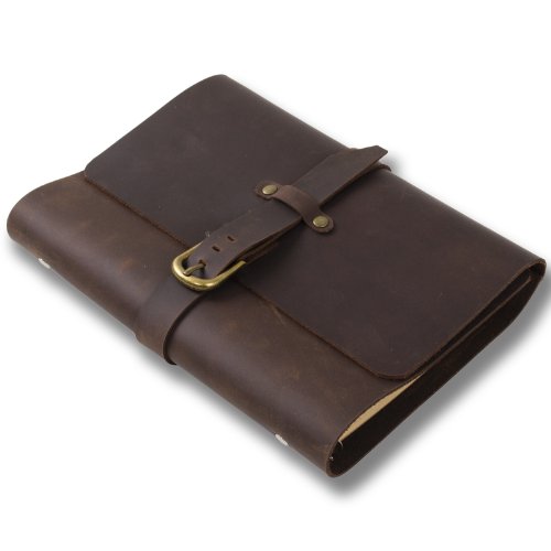Quaderno con copertina in pelle classico, ricaricabile, con fibbia e cinturino, realizzato a mano, cartoncino a righe, con scatola regalo A5(14,5 x 21 cm) Brown