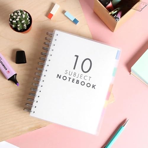 Quaderno con divisori per 10 argomenti, formato A5, traslucido, 200 fogli (400 pagine) di carta bianca a righe di Paperchase