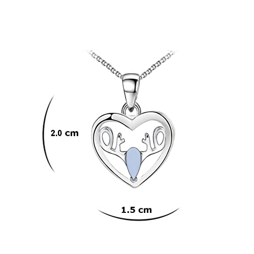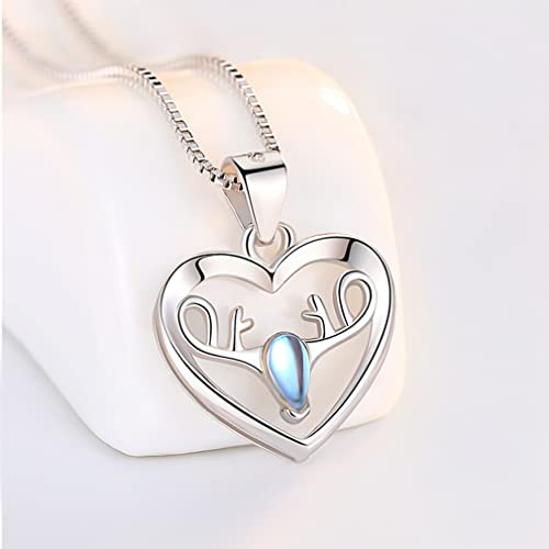 Quadiva E! Collana da donna in argento 999 con ciondolo a forma di cuore e corna di cervo (colore: oro bianco, placcato oro) decorato con una pietra di luna