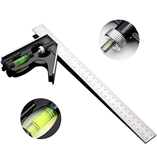 Set di quadrati combinati per ingegneri da 12 pollici 300 mm, Combinazione multifunzionale metrica regolabile universale in acciaio inossidabile Prova set quadrato Strumenti di misurazione