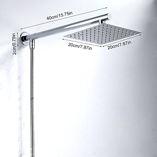 20,3 cm quadrato soffione doccia a pioggia quadrato in acciaio INOX ultra sottile potente ad alta pressione top spray bagno doccia a pioggia e braccio di prolunga tubo ingresso inferiore