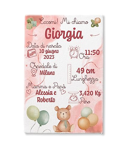 Quadretto Nascita Bimbo e Bimba | Tela per Nascita Neonato | Regalo bambini in Tela | Regalo personalizzato