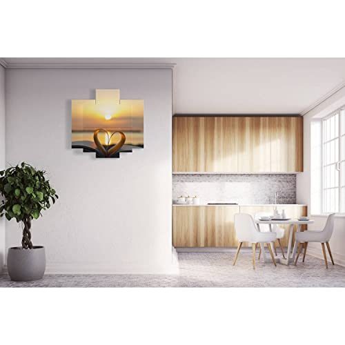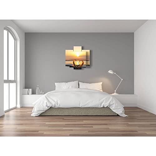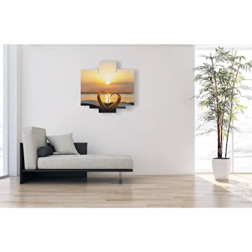 quadro tramonto in un cuore di libro é un quadro moderno tridimensionale composto da 5 pannelli. Dimensione totale (LxHxS): 89cm x 85 cm x 5.6 cm. (3 verticali 2 orizzontali)