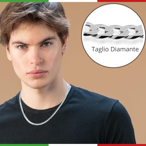 ✔ 【PURO ARGENTO 925 ITALIANO】 Elegante collana argento uomo modello Cubana, 5mm, incisione diamante. Realizzata a mano in Italia, questa catenina argento uomo unisce qualità e unicità. Argento Sterling ipoallergenico, privo di nichel, ideale per pelli sensibili. Lunghezza 46 cm, larghezza 5mm, con robusta chiusura a moschettone. Perfetta come girocollo uomo, è una scelta eccellente per chi cerca una collana uomo argento 925 vero.