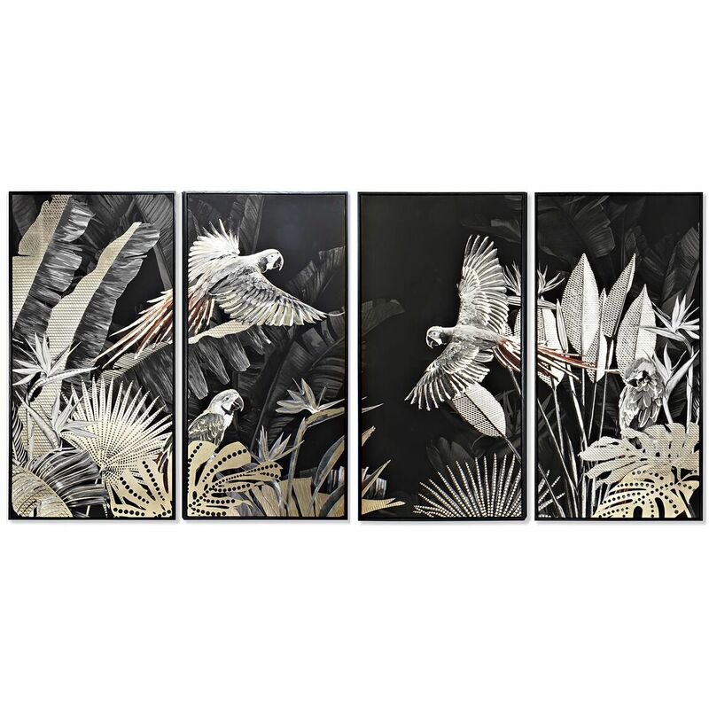 Se vuoi dare un tocco d'originalità alla tua casa, con Set di 4 quadri DKD Home Decor Tropicale (280 x 4 x 140 cm) potrai farlo. Tipo: Incorniciata Colore: Nero Multicolore Dorato Stampa: Tropicale Stile: Tropicale Montabile: No Materiale: Tela PS Regolabile: No Design: Tropicale Dimensioni appross.: 280 x 4 x 140 cm