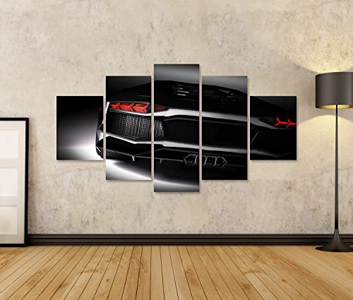Quadri moderni Nero auto sportive veloci sotto i riflettori, sfondo nero. Brillante, nuova Stampa su tela - Quadro x poltrone salotto cucina mobili ufficio casa - fotografica formato XXL DTO