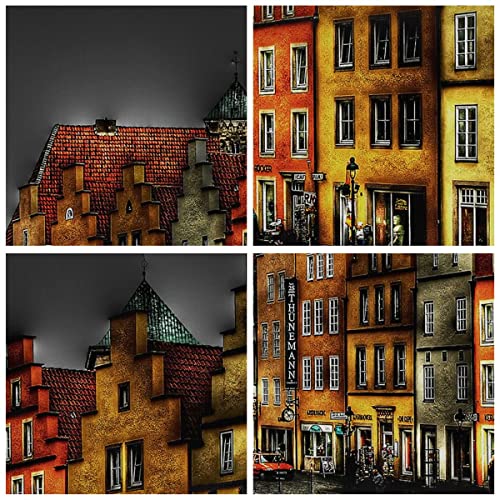 Quadri Moderni Soggiorno Colorato case monumenti storici Quadro su Tela 120x80cm Stampe da Parete Camera da Letto 1 pezzo Wall Art Canvas Grandi Decorazione Murale Grafica Immagini AA120x80-0251