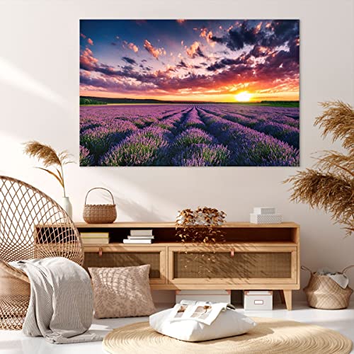Quadri Moderni Soggiorno lavanda montagne campo Quadro su Tela 120x80cm Stampe da Parete Camera da Letto Cucina 1 pezzo Wall Art Canvas Grandi XXL Decorazione Murale Grafica Immagini AA120x80-3816