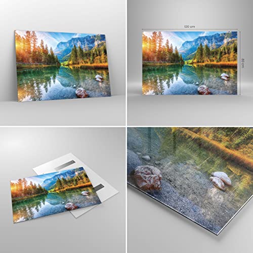 Quadri Moderni Soggiorno Paesaggio montagne alba Quadro su Vetro 120x80cm Stampe da Parete in Vetro Camera da Letto Cucina 1 pezzo Wall Art Grandi XXL Decorazione Murale Immagini GAA120x80-4456
