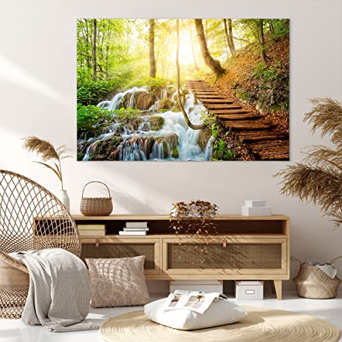 Quadri Moderni Soggiorno parco cascata acqua Quadro su Tela 120x80cm Stampe da Parete Camera da Letto Cucina 1 pezzo Wall Art Canvas Grandi XXL Decorazione Murale Grafica Immagini AA120x80-3639