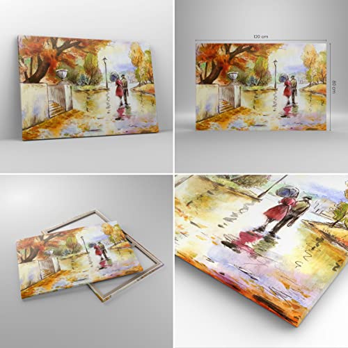 Quadri Moderni Soggiorno Tempo pioggia autunno parco Quadro su Tela 120x80cm Stampe da Parete Camera da Letto Cucina 1 pezzo Wall Art Canvas Grandi Decorazione Murale Grafica Immagini AA120x80-2914