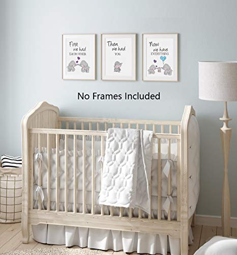 ◆ Perfetto per la decorazione della parete: questo simpatico set di 3 stampe presenta un detto ispiratorio (prima ci siamo avuti, poi abbiamo avuto te, ora abbiamo tutto) e adorabili animali (padre elefante, madre elefante, elefante) per creare un ambiente caldo per la tua famiglia. Queste simpatiche stampe sono perfette per camerette dei bambini, camerette dei bambini, salotti, sale giochi o altrove. Queste stampe sono di colore morbido, quindi staranno bene su qualsiasi superficie di colore.