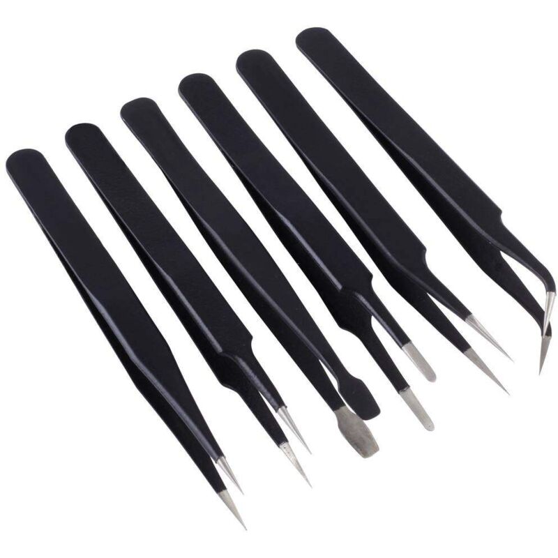 Dettagli tecnici Materiale Acciaio inox Tipo prodotto Kit pinzette Pinzette ESD 6 pz. Acciaio inox rivestito EN 61340-5-1 Nel mondo dell'elettronica e della tecnologia di oggi si entra in conflitto con il fenomeno ESD (scariche elettrostatiche). Molti componenti, moduli, schede a innesto ecc. sono estremamente sensibili alle scariche elettriche che si verificano nella vita quotidiana in modo completamente normale e spesso inosservato. Questi sovraccarica di tensione possono distruggere o almeno danneggiare in modo duraturo i componenti elettronici - cioè: Un componente danneggiato può funzionare per un intero periodo di tempo prima di subire i danni causati originariamente dall'ESD e potenzialmente causare ulteriori costosi danni conseguenti. Proprio quando si tratta di elettronica e tecnologia, uno strumento antistatico è un prerequisito fondamentale. Realizzato in acciaio inox di alta qualità e ad alta resistenza da 201er e dotato di rivestimento conduttivo e antiscivolo nero, le