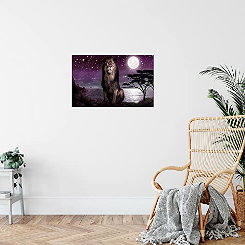 Quadro Africa Leone Moderni Murale - Made In Germany - Luna Grigio Viola Corridoio 022914b