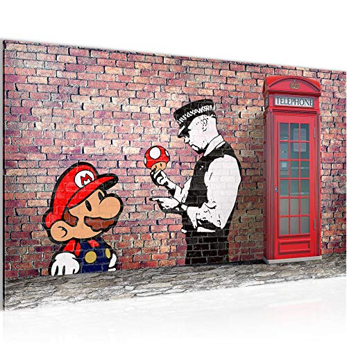 Quadro Banksy Mario E Poliziotto Moderni Murale - Made In Germany - Arte Di Strada Beige Rosso Corridoio 032914a