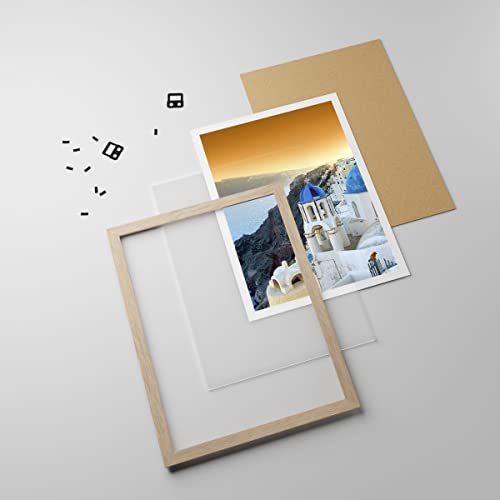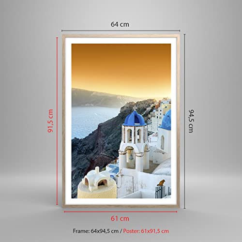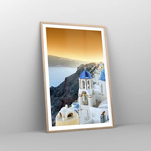 Quadro in cornice - Poster in cornice - Cornice rovere chiaro - Santorini Grecia vacanza isola - 61x91,5 cm - Pronto da appendere - Quadri Moderni - Stampe artistiche da parete - P2NPA61x91-2529