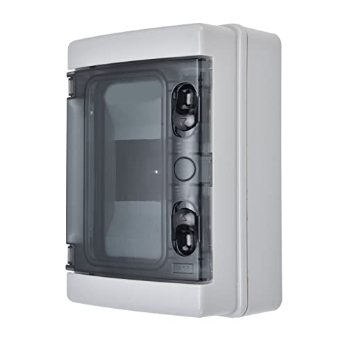 SCATOLA DI DISTRIBUZIONE A 4 VIE: La scatola di protezione della distribuzione è progettata per guida DIN a 4 vie e può essere facilmente montata a parete. La scatola di giunzione in plastica è completamente isolata e ha una copertura grigia trasparente. Lo stato interno può essere facilmente visualizzato senza aprire la scatola. Il coperchio è progettato con un pulsante per una facile apertura.