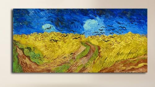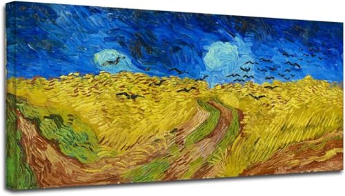 Quadro Van Gogh Campo di Grano con volo di corvi - Vincent Van Gogh Quadro stampa su tela canvas con telaio - da cm 50 a cm 200 di larghezza (QUADRO CON TELAIO IN LEGNO, CM 160X77)