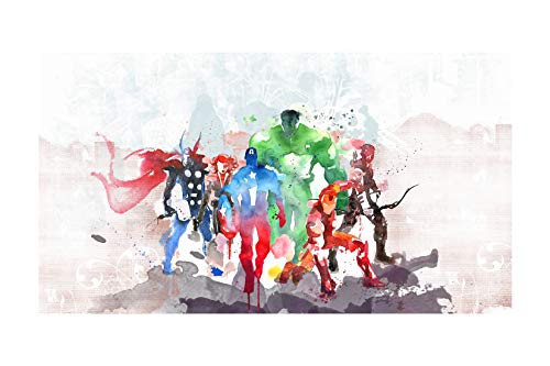 Quadro Moderno Avengers - Stampa su tela canvas HD - Effetto Acquerello - Film - Cinema - Supereroi Fumetti Marvel - Pronto da Appendere - 65x36 cm - Made in Italy