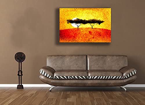 Quadro Moderno ETNICO sole paesaggio africa arte africana Quadri moderni da Parete XXL grande Stampa su tela Canvas Decorazione muro Murale Soggiorno Arredo Camera da letto Cucina (70x100 cm, 1)