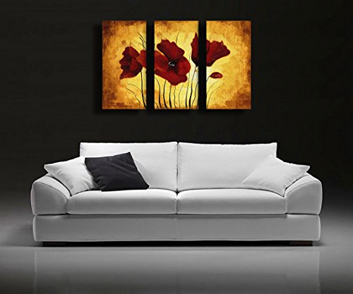Quadro Moderno FIORI Etnico PAPAVERI Astratto Abstract Fiore Cucina Soggiorno Camera da letto Quadri Moderni Stampa su Tela Canvas (70x90 cm(3pz 30x70))
