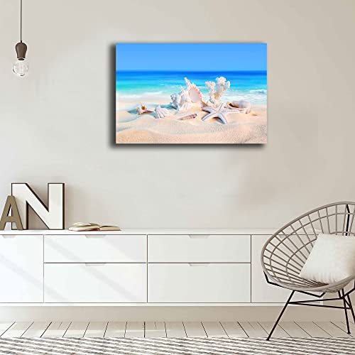 Quadro Moderno MARE corallo stella SPIAGGIA Quadri moderni soggiorno da Parete XXL grande Stampa su tela Canvas Decorazione Murale muro Arredo Camera da letto Cucina (70x100 cm, 1)