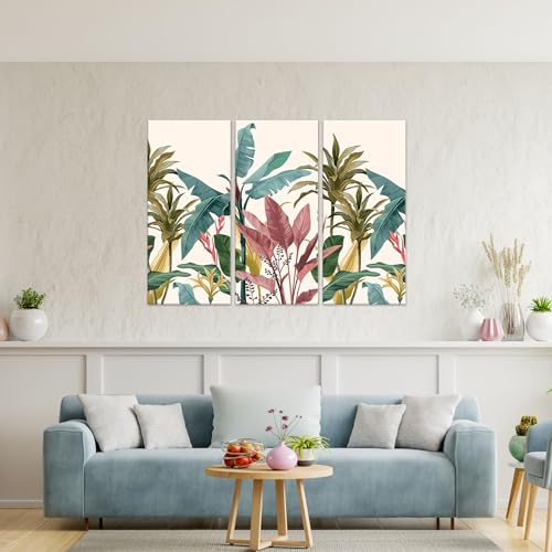 Quadro Moderno 3 pezzi stampa su tela GRANDE QUADRO 100x150 cm BANANA LEAVES, foglie banano per soggiorno, capezzale camera da letto, ufficio