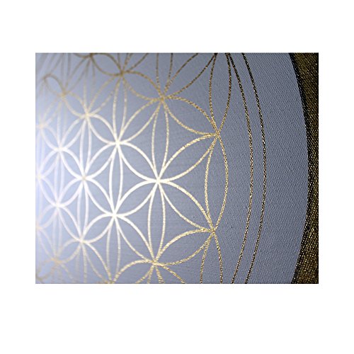Quadro da parete con fiore della vita in oro chiaro - dipinto a mano - dimensioni 60 cm rotondo - fiore della vita in oro con colori acrilici - Tela tesa su telaio rotondo | Made in Germany