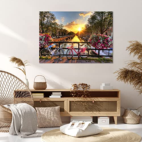 Quadro su Tela 100x70cm Stampe da Parete Biciclette Canale Amsterdam l'architettura Grandi Decorazione Murale Camera da Letto 1 pezzo Quadri Moderni Soggiorno Immagini Wall Art Canvas AA100x70-3081