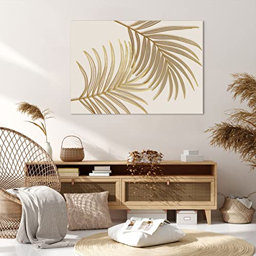 Quadro su Tela 100x70cm Stampe da Parete D'oro foglie palme Grandi Decorazione Murale Camera da Letto Cucina 1 pezzo Quadri Moderni Soggiorno Grafica Immagini Wall Art Canvas AA100x70-4738