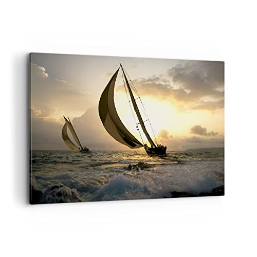 Quadro su Tela 100x70cm Stampe da Parete nave tramonto sole paesaggio Grandi Decorazione Murale Camera da Letto Cucina 1 pezzo Quadri Moderni Soggiorno Grafica Immagini Wall Art Canvas AA100x70-3158