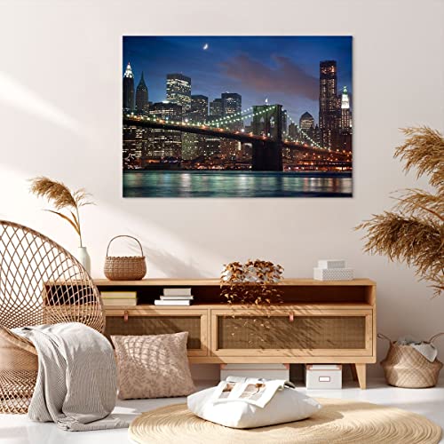 Quadro su Tela 100x70cm Stampe da Parete Ponte di Brooklyn notte città di New York Grandi Decorazione Murale Camera da Letto 1 pezzo Quadri Moderni Soggiorno Immagini Wall Art Canvas AA100x70-0512