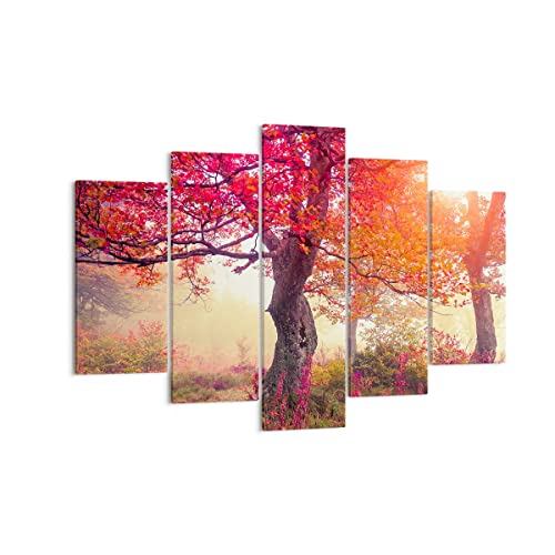 Quadro su Tela 150x100cm Stampe da Parete albero natura prato Grandi XXL Decorazione Murale Camera da Letto Cucina Set 5 pezzi Quadri Moderni Soggiorno Grafica Immagini Wall Art Canvas EA150x100-3658