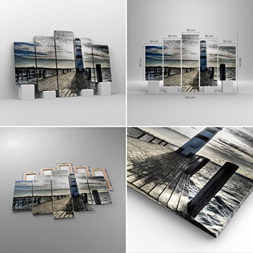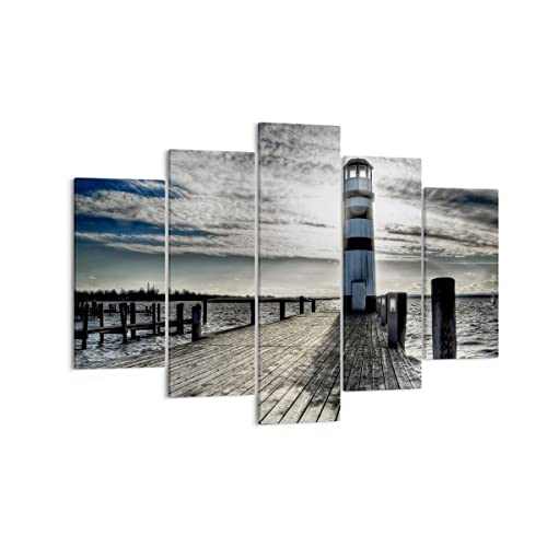 Quadro su Tela 150x100cm Stampe da Parete Lago faro ponte di legno acqua Grandi Decorazione Murale Camera da Letto 5 pezzi Quadri Moderni Soggiorno Grafica Immagini Wall Art Canvas EA150x100-0330