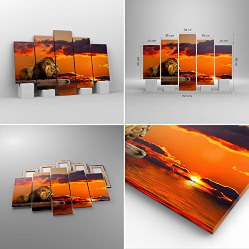 Quadro su Tela 150x100cm Stampe da Parete Leone Sole Paesaggio Grandi XXL Decorazione Murale Camera da Letto Cucina Set 5 pezzi Quadri Moderni Soggiorno Grafica Immagini Wall Art Canvas EA150x100-0230