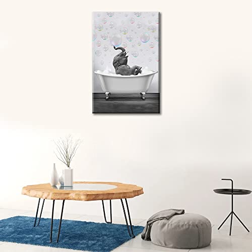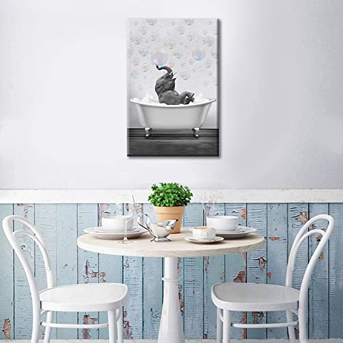 Quadro su tela con animali divertenti da parete, motivo elefante, in vasca da bagno, per bagno, soggiorno, camera da letto, decorazione moderna, con cornice, pronta da appendere, 30 x 45 cm