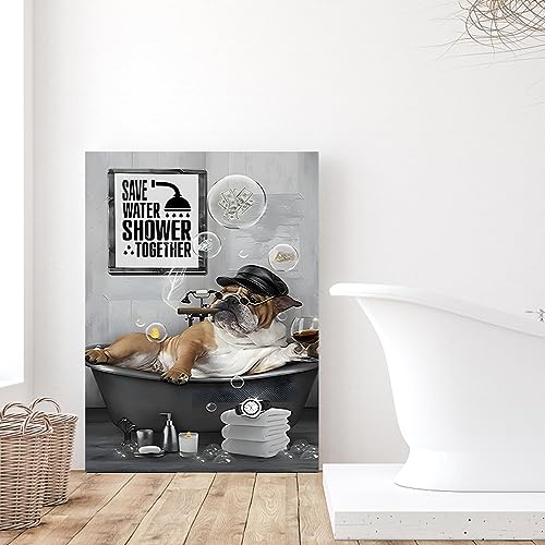 Quadro su tela con animali nella vasca da bagno, motivo giraffa, orsetto, elefante, mucca, alpaca, bagno, senza cornice (30x40cm,I)